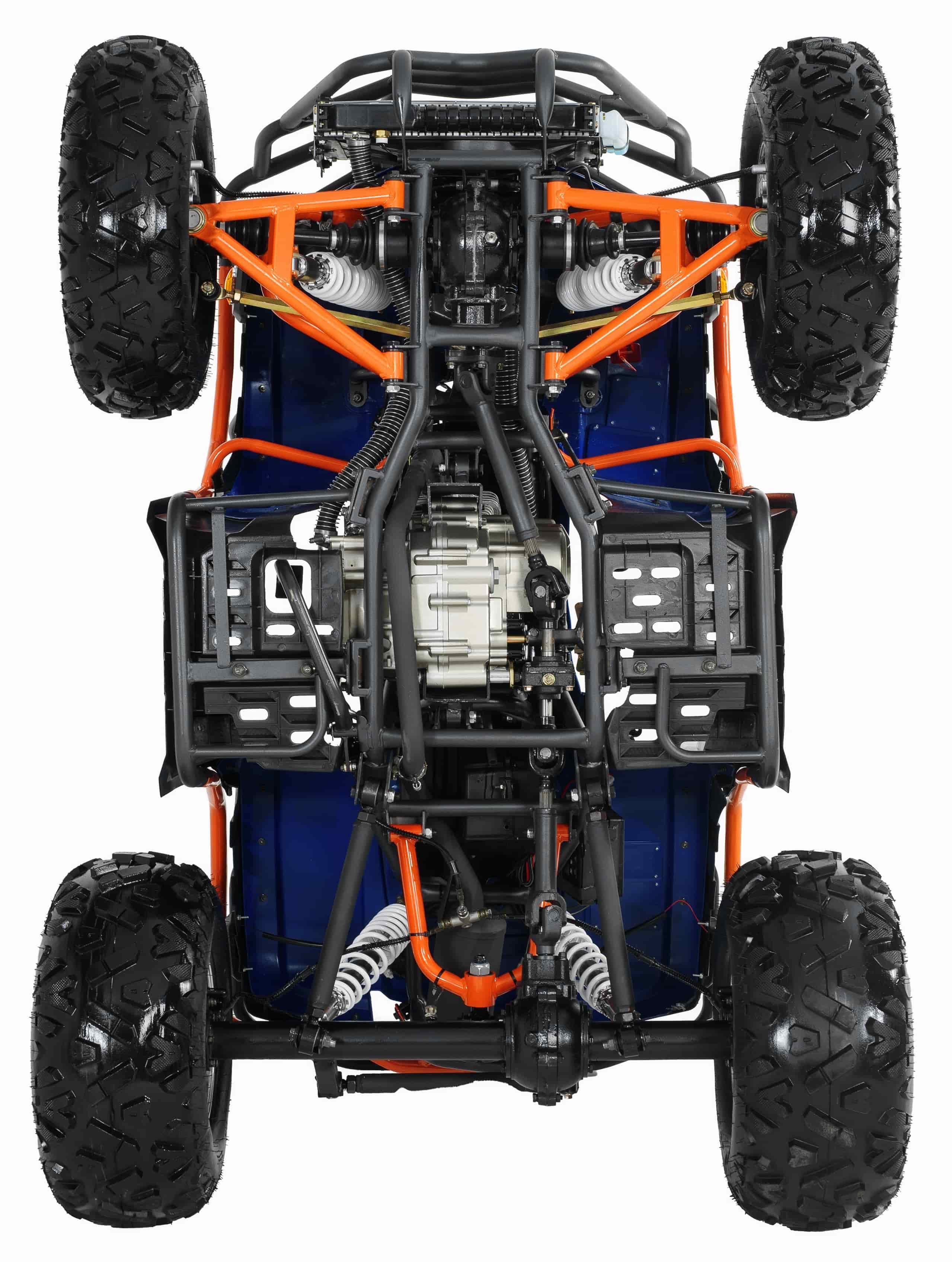 Высокопрочная пространственная рама изготовлена из хроммолибденового сплава AJ-1, что позволяет в 2 раза увеличить прочность конструкции, а также стойкость рамы к деформации, перегрузкам и коррозии. Увеличенное сечение рамы с узлами жёсткости позволяет нагрузить на квадроцикл до 250 кг.