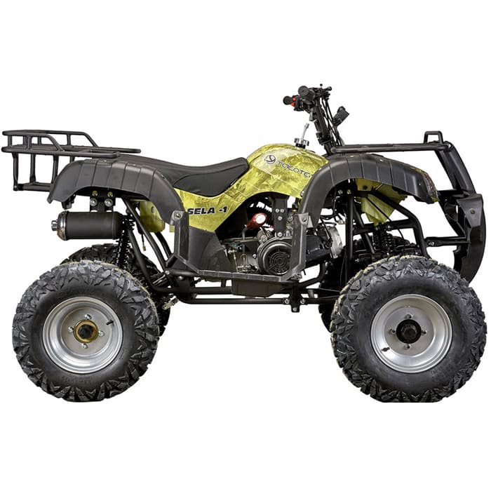 Удлиненное сиденье и более широкие подножки позволит удобно расположиться водителю и пассажиру. Колеса 10 радиуса делают квадроцикл более проходимым и высоким (дорожный просвет - 40 см). Максимальная нагрузка - до 200 кг. На квадроцикле 150 установлен передний и задний багажники, которые выдерживают нагрузку до 100кг каждый. Расход топлива - 5 литров на 100км.