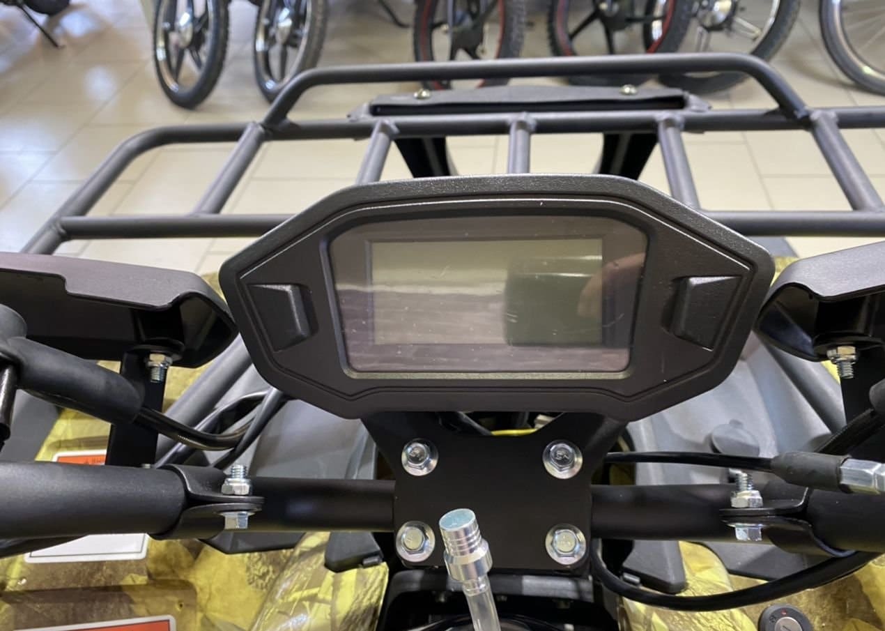 На квадроцикле установлена автоматическая коробка передач, дисковые тормоза, техника оснащена также удобным широким сидением. В комплекте идут светодиодная оптика, защита рук, электронная приборная панель, песочная резина повышенной проходимости. Предусмотрен ограничитель скоростного режима. Максимальная нагрузка для детского квадроцикла - до 160 кг.