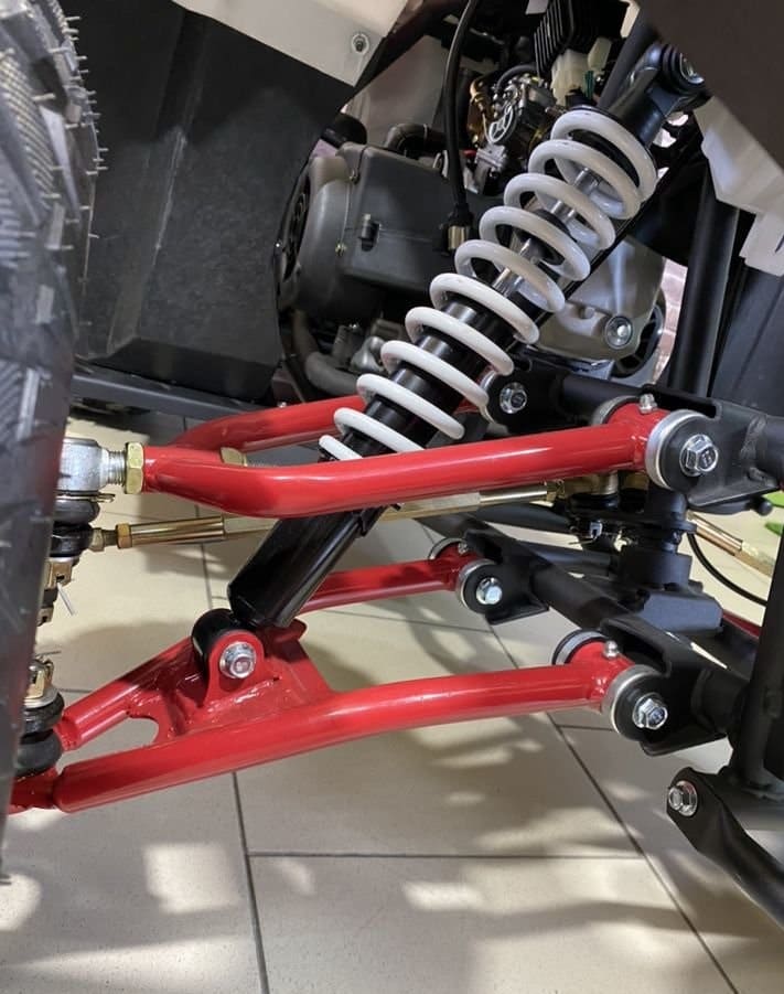 Квадрик оснащен мощным 4-х тактным двигателем 17 л.с., объемом 180 кубов, который способен быстро вывести квадроцикл на максимальную скорость 75 км/ч, а также обеспечить достаточную производительность и динамичное управление. Системой воздушного охлаждения предотвращается перегрев двигательного отсека. С объемом топливного бака в 5 литров квадроциклом можно беспрерывно пользоваться в течение часа на максимальной скорости.