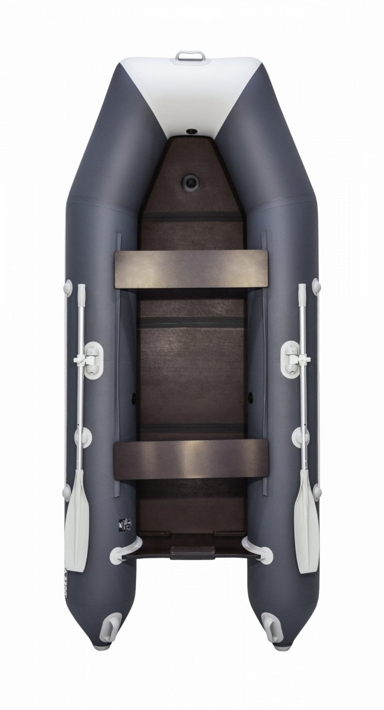 Данная модель выпускается в двух модификациях: Аква 3200 С и Аква 3200 СК. Для начала чуть подробнее расскажем о различиях и далее перейдем к детальному описанию основных преимуществ и характеристик. Аква 3200 С или «Слань» сконструирована с плоским дном и рассчитана на эксплуатацию с лодочным мотором мощностью до 8 л.с. В плоскодонной конструкции фанерный пол имеет тип складной книжки. Аква 3200 СК «Слань-киль» дополнительно оснащена надувным килем. Пайол состоит из отдельных элементов, собираемых при помощи алюминиевых направляющих.