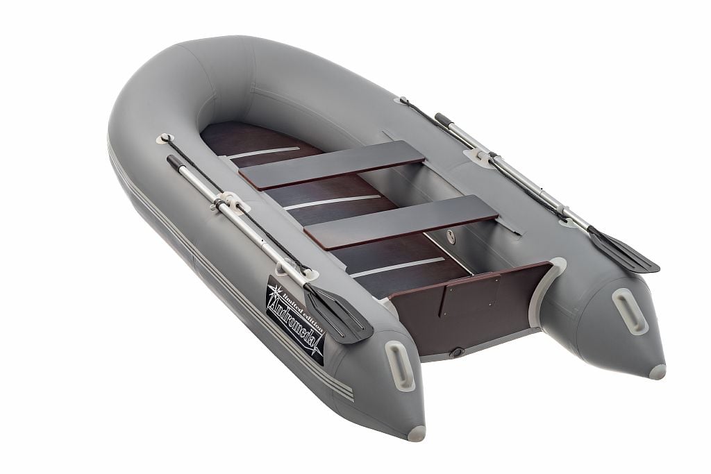 В изделии применены все самые лучшие технические и технологические достижения, которые позволяют лодке развивать высокую скорость и обладать отличной маневренностью и управляемостью, обеспечивать высокую остойчивость и другие характеристики, что в целом отвечает самым высоким критериям надежности и безопасности. Весь модельный ряд лодок «Андромеда (Andromeda)» оснащается высококачественной фурнитурой собственного производства. Ручки, шайбы, пластиковые элементы весла и поворотной уключины, фиксаторы сидений, держатели транца и концевики баллона разрабатывались специально для условий повышенных нагрузок, имеют хорошие показатели испытаний на разрыв и излом.