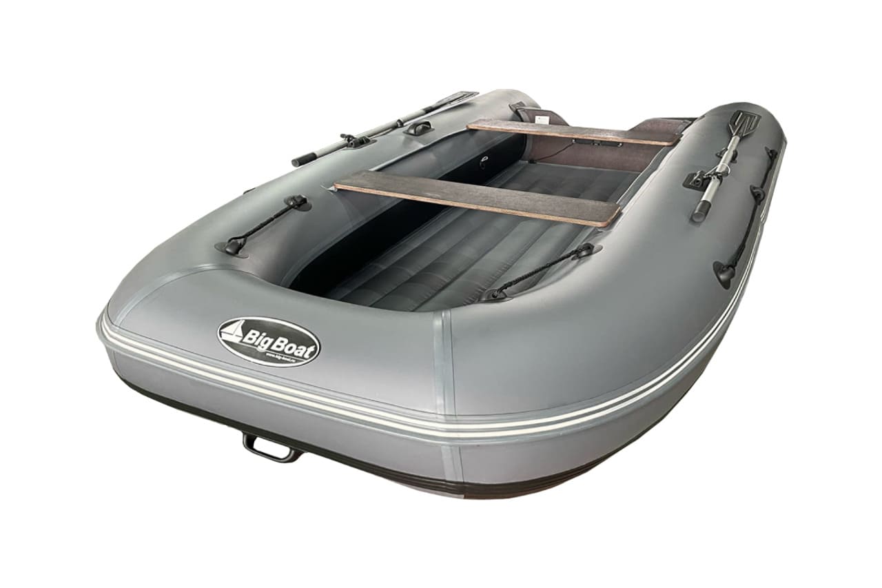 Каждая лодка укомплектована удобными и практичными лавками, которые свободно можно перемещать вдоль борта лодки. Также в стандартную комплектацию лодки входят весла длиной 1,6 м, которые в свою очередь можно заменить за дополнительную плату на разборные весла длиной 2 м. Тип пайола лодки – надувное дно низкого давления, но для создания дополнительной жесткости дна идеально подходит ЭВА-коврик