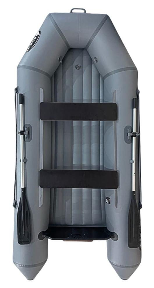 Каждая лодка укомплектована удобными и практичными лавками, которые свободно можно перемещать вдоль борта лодки. Также в стандартную комплектацию лодки входят весла длиной 1,6 м, которые в свою очередь можно заменить за дополнительную плату на разборные весла длиной 2 м. Тип пайола лодки – надувное дно низкого давления, но для создания дополнительной жесткости дна идеально подходит ЭВА-коврик