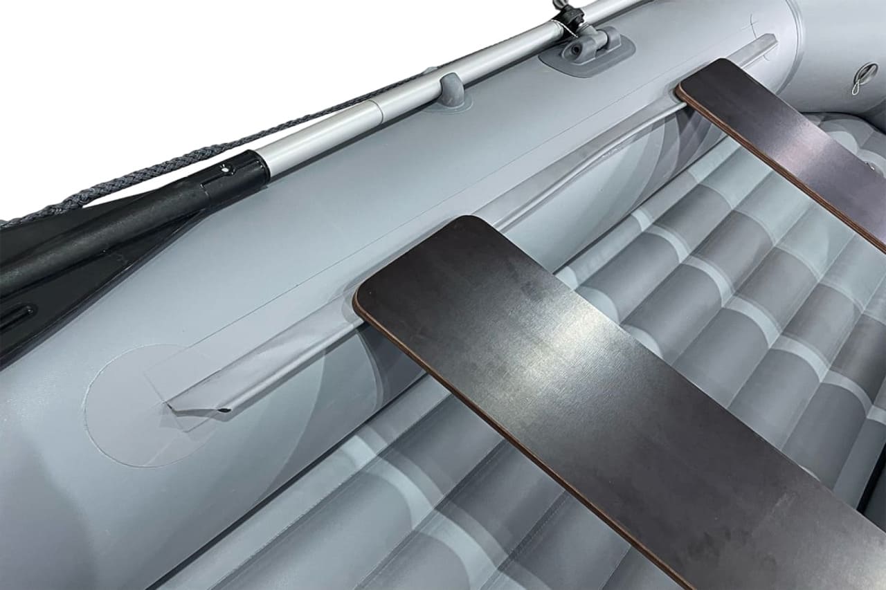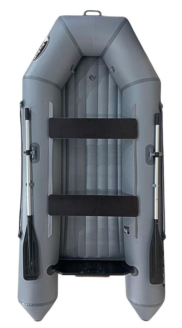 Каждая лодка укомплектована удобными и практичными лавками, которые свободно можно перемещать вдоль борта лодки. Также в стандартную комплектацию лодки входят весла длиной 1,6 м, которые в свою очередь можно заменить за дополнительную плату на разборные весла длиной 2 м. Тип пайола лодки – надувное дно низкого давления, но для создания дополнительной жесткости дна идеально подходит ЭВА-коврик