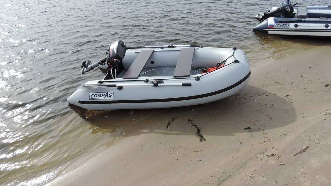 Надувная лодка Компас весит всего 55 кг, а размер ее составляет 285 см в длину, 155 см в ширину и 42 см в высоту. Благодаря своим габаритам и весовым данным может маневрировать и проходить по глубоким водоемам и мелководью.