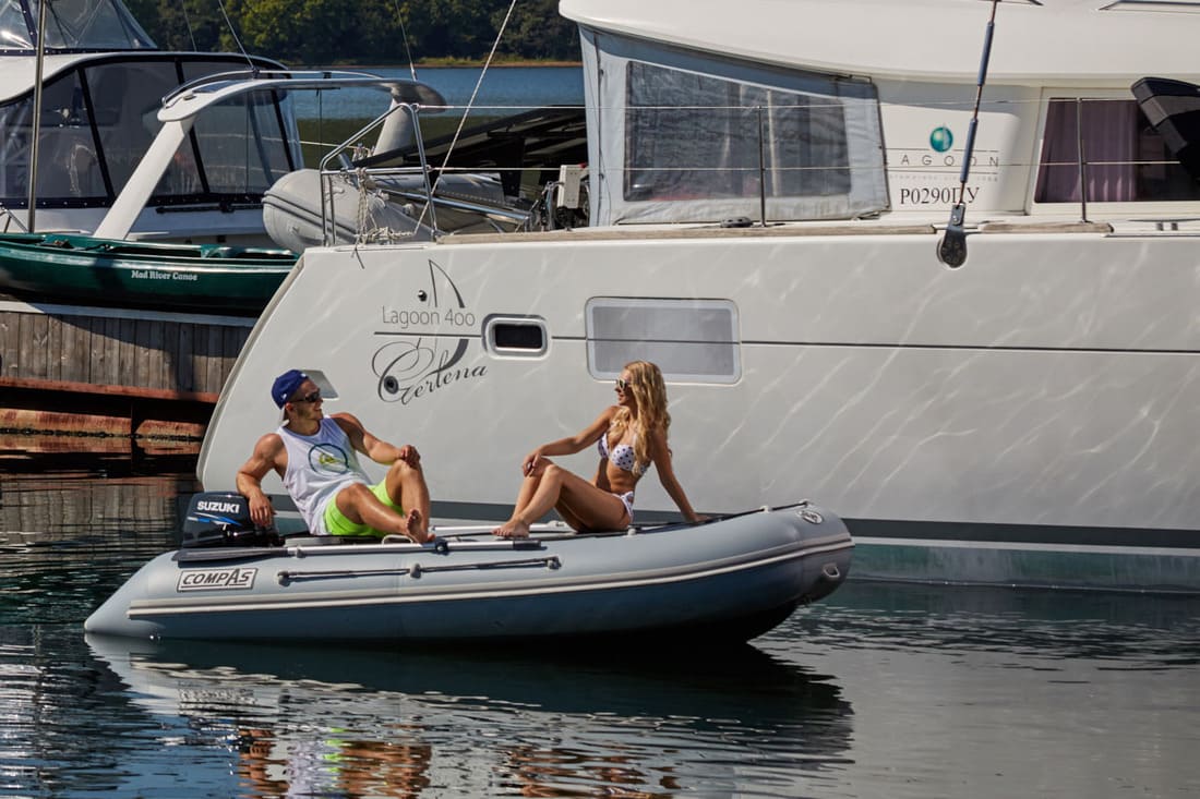 Надувная лодка Компас весит всего 53 кг, а размер ее составляет 350 см в длину, 178 см в ширину и 49 см в высоту. Благодаря своим габаритам и весовым данным может маневрировать и проходить по глубоким водоемам и мелководью.