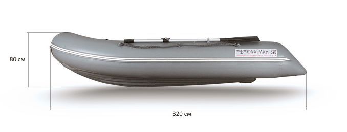 Флагман 320 является промежуточной между лодками, предназначенными для небольших водоёмов и лодками, которые можно использовать в открытых и крупных закрытых водоёмах. Лодка имеет все признаки взрослой лодки: умеренно килевое дно, большой диаметр баллонов, приличную высоту борта, опорную пластину Fast Sliding. Для людей, строго относящихся к весу лодки (в сторону его уменьшения), мы изготавливаем модель Флагман 320L. Эта модель легче как по весу, так и по цене.