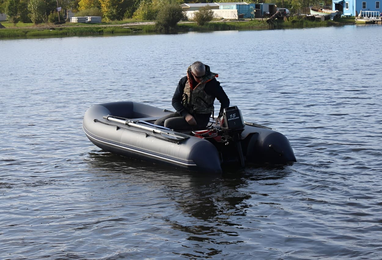 Как следствие - высокие скоростные характеристики, улучшенные мореходные качества и отличная управляемость. Плотность материала ПВХ – 850 г/кв.м. В ней можно лежать, сидеть как на надувном матрасе, можно перевозить габаритные и объёмные грузы. Она рассчитана на – 4 человека, максимально допустимая грузоподъемность – 650 кг. Вес – 39 кг. Имеется транец для мотора до - 20 л.с. Также она оснащается передвижными сидениями – для комфортного расположения. Продуманные конструктивные решения позволяет не затрачивать много времени на сборку, а также обеспечивают простую и комфортную транспортировку.