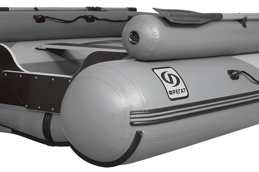 - Окончания баллонов имеют специальную сферическую форму, что даёт лучший угол дифферента на ходу и позволяет сдвинуть транец к окончанию баллонов, благодаря чему лодка Фрегат имеет максимальную площадь кокпита в данной размерности надувных лодок, а значит и вместимость, превосходящую или равную лодкам большой длины с конусообразным окончанием баллонов.