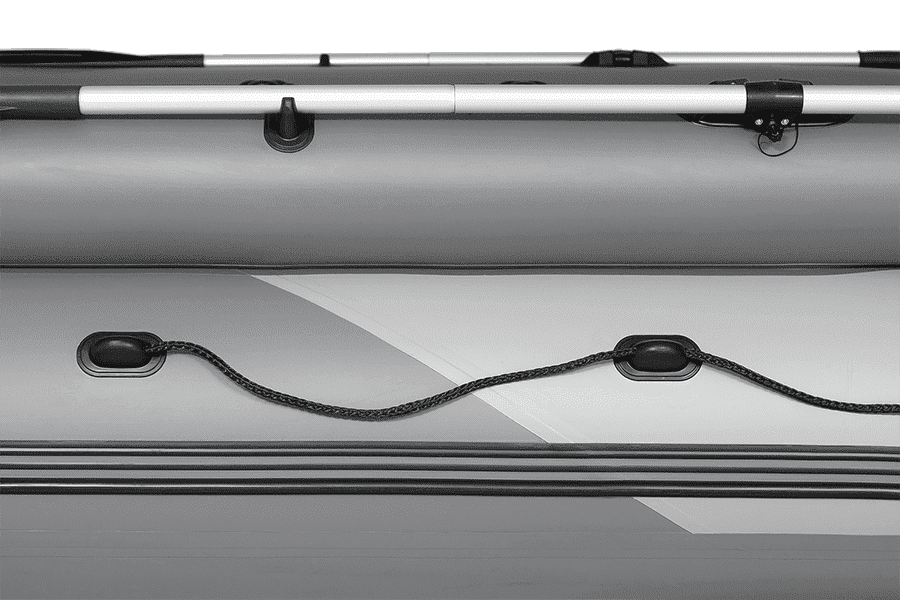 - Применённый специальный реданный профиль на кормовой оконечности нижних баллонов оптимизирует срыв потока при глиссировании лодки, обеспечивая высокие скоростные характеристики и защиту от повреждений зоны «законцовок» основных баллонов. Для сложных условий эксплуатации, наиболее уязвимая зона надувного дна моторной надувной лодки ПВХ защищена полосой протектора из ПВХ профиля;