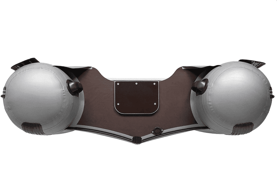 - - жёстко вклеенный по углом транец, изготовленный на автоматизированном горизонтально-координатном станке с ЧПУ, выполнен в форме «крыла чайки», что улучшает управляемость лодки и минимизирует возможность прохвата воздуха к винту даже при резких маневрах, а также позволяет эксплуатировать лодку с более тяжелыми 4-тактными моторами.