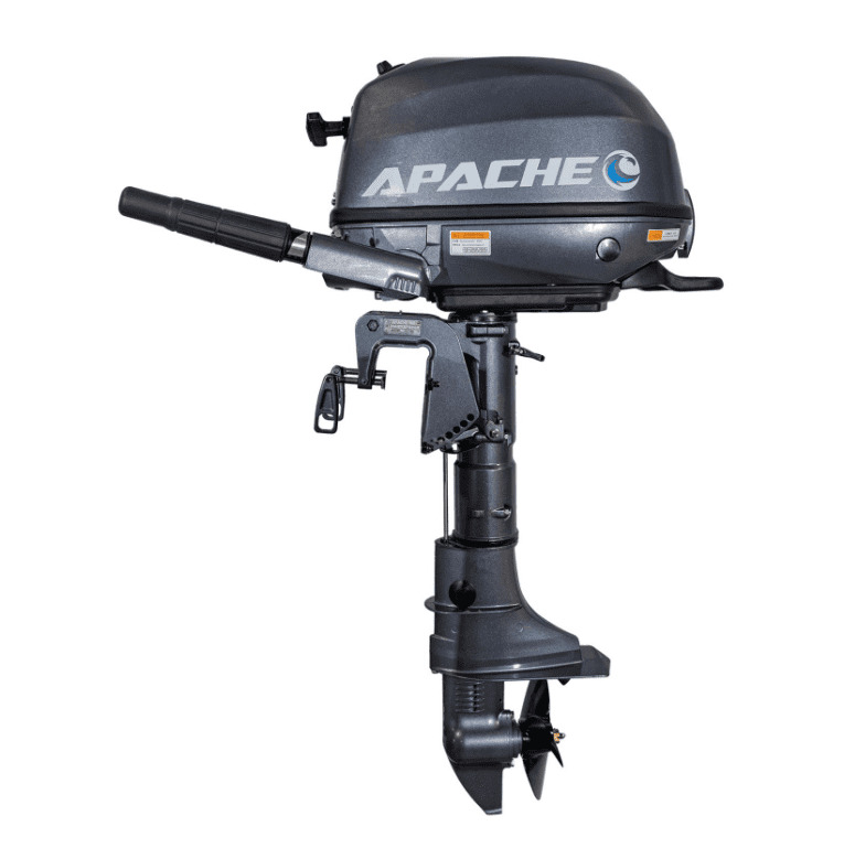 Лодочный мотор APACHE T6BS рассчитан на передвижение по рекам и озерам на надувной лодке. Мощность мотора составляет 6 лошадиных сил при рабочем объеме цилиндра 139 куб.см. Это усовершенствованная модель, которая благодаря более современной системе жиклеров и клапанов дает большую мощность, чем ее аналог, при сохранении того же объема цилиндра и общего веса агрегата.