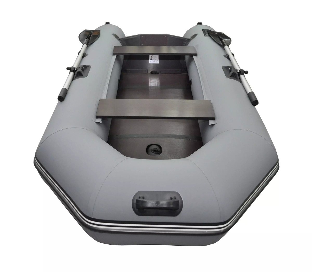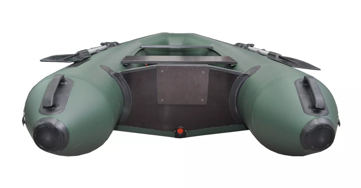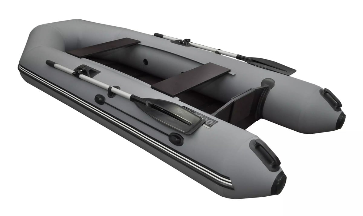 Баллоны соединены друг с другом и с полом клееными швами. Килевое дно позволяет уверенно выполнять различные маневры на воде. Жесткий, складной пол, стационарный транец и пассажирские сиденья изготовлены из влагостойкой фанеры. Сиденья подвешиваются на универсальном креплении ликтрос-ликпаз, свободно перемещаются вдоль бортов. Весла разборного типа состоят из алюминиевой ручки и пластиковой лопасти, устанавливаются по бортам на поворотном фиксаторе и пластиковой защелке. Стационарный транец имеется специальную накладку для установки подвесного лодочного двигателя, а также оборудован сливным клапаном.