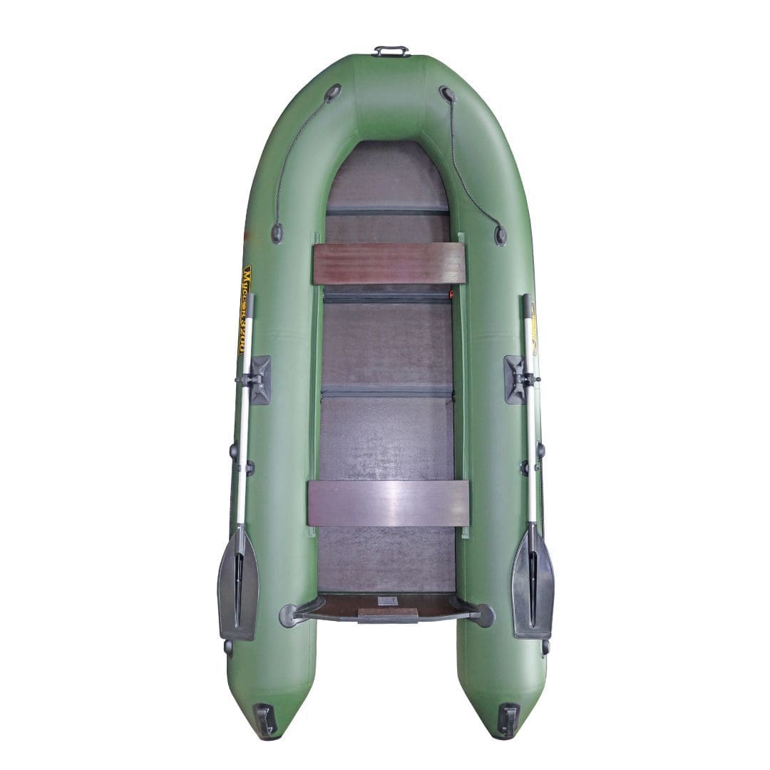 Фанерные сиденья подвешиваются на универсальном креплении ликтрос-ликпаз, свободно перемещаются вдоль бортов. Весла сборного типа состоят из алюминиевой ручки и пластиковой лопасти, для удобства гребца фиксируются на поворотных уключинах и пластиковых защелках. Лодка оснащена всей необходимой фурнитурой: опорными леерами, ручкой шкипера и транспортировочной ручкой. В носовой части имеется якорный рым с ручкой, а на корме по баллонам установлены транспортировочные ручки. Износоустойчивость лодки подтверждает лента привального бруса, проклеенная по периметру, прорезиненная лента по килю и плотность армированного поливинилхлорида - 900 грамм на квадратный метр, из которого изготовлена лодка.