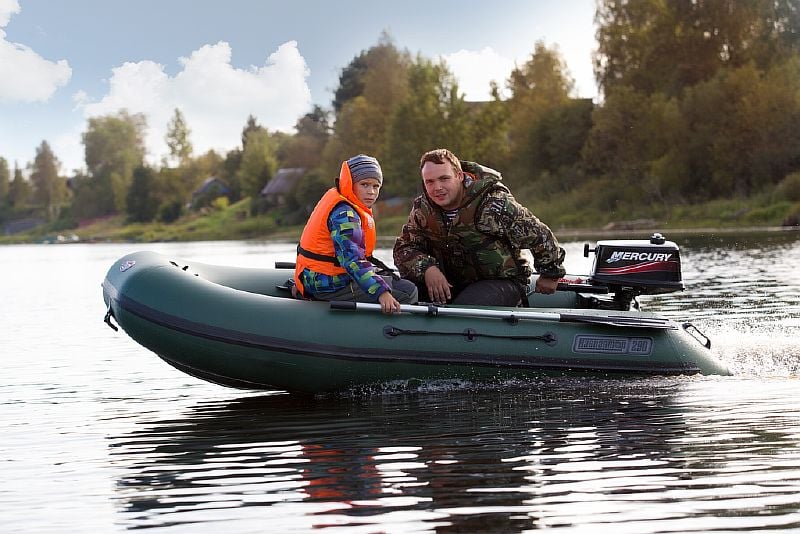 - Крепление выносного топливного бака, а также коврик из ПВХ-ткани того же цвета, что и основной цвет лодки