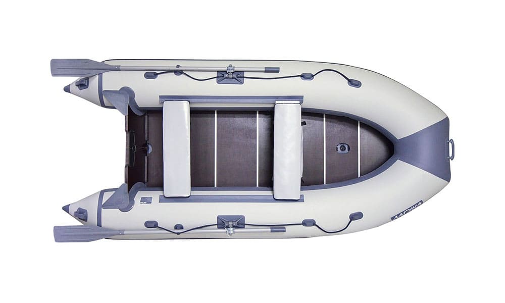 Эта лодка отличается повышенной плотностью баллонов и днища 850 г/м2, обеспечивая уверенность, устойчивость и стабильность внутри судна, избавляя от ощущения, будто сидишь на скамейке над водой. Жесткость днища при надувании достигается не из-за давления, а благодаря установленным вертикально и продольно внутри дна переборкам, изготовленным из ткани с нулевым остаточным удлинением.