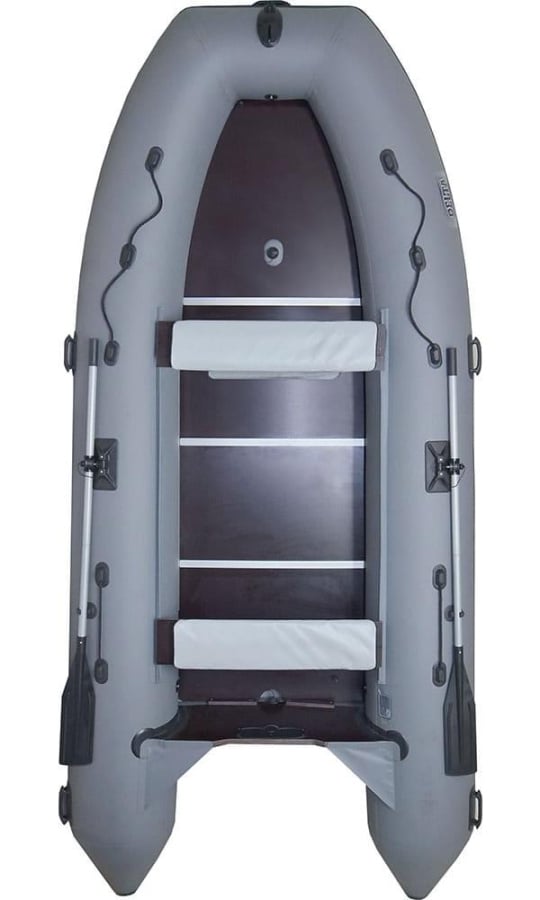 Эта лодка отличается повышенной плотностью баллонов и днища 1150 г/м2, обеспечивая уверенность, устойчивость и стабильность внутри судна, избавляя от ощущения, будто сидишь на скамейке над водой. Жесткость днища при надувании достигается не из-за давления, а благодаря установленным вертикально и продольно внутри дна переборкам, изготовленным из ткани с нулевым остаточным удлинением.