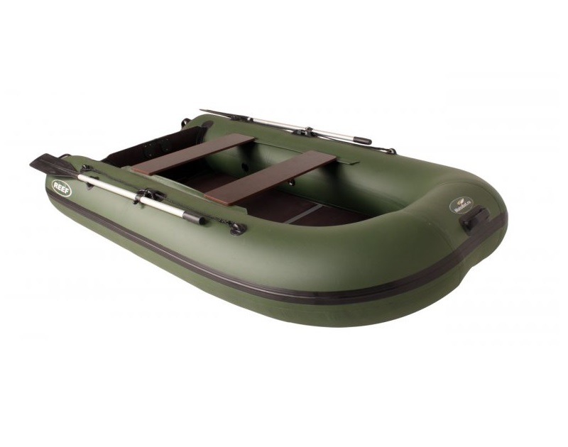 Надувная моторно-гребная лодка REEF 290K имеет надувной киль. Мотор, устанавливаемый на REEF 290K должен иметь мощность не больше 6 л.с. Для изготовления баллонов мы используем специальную ПВХ-ткань немецкой фирмы HEYTEX. Ее плотность 700 г/м2. Для изготовления днища идет ткань уже большей плотности - 750 г/м2. Корпус лодки состоит из 3 герметичных отсеков. Это придает большую безопасность при действиях на воде. Для защиты корпуса лодки при швартовке и установки тента служит 6 мм привальный брус. В лодке предумотрены два передвижных сиденья по системе ликтрос-ликпаз. Ширина банки 20 см, длина - 80 см. Диаметр баллона лодки 0.40 м. Лодка упаковывается в специальную рюкзак-сумку из тентовой ткани 600 D. Пайолы изготовлены из пяти частей влагостойкой фанеры толщиной 6 мм (представляет собой подобие пола-книжки). Данная модель при всех своих достоинствах имеет приемлемую цену, что является несомненным плюсом при выборе лодки.