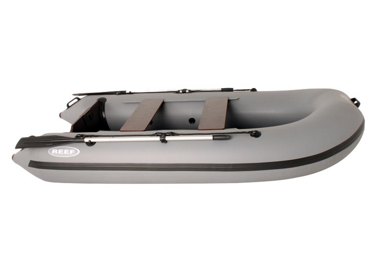 Для защиты корпуса лодки при швартовке и установки тента служит 6 мм привальный брус. В лодке предумотрены два передвижных сиденья по системе ликтрос-ликпаз. Ширина банки 20 см, длина - 80 см. Диаметр баллона лодки 0.40 м. Лодка упаковывается в специальную рюкзак-сумку из тентовой ткани 600 D.Лодка REEF 290L имеет плоское днище, пайолы изготовлены из пяти частей влагостойкой фанеры толщиной 6 мм (представляет собой подобие пола-книжки).