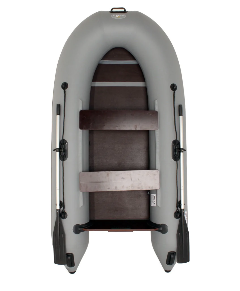 Надувная моторно-гребная лодка REEF 320L имеет плоское дно и пол-книжку. Мотор, устанавливаемый на REEF 320L должен иметь мощность не больше 10 л.с. Для изготовления баллонов мы используем специальную ПВХ-ткань немецкой фирмы HEYTEX. Ее плотность 750-850 г/м2. Корпус лодки состоит из 3 герметичных отсеков. Это придает большую безопасность при действиях на воде. Для защиты корпуса лодки при швартовке и установки тента служит привальный брус. В лодке предумотрены два передвижных сиденья по системе ликтрос-ликпаз. Ширина банки 20 см, длина - 90 см. Диаметр баллона лодки 0.41 м.