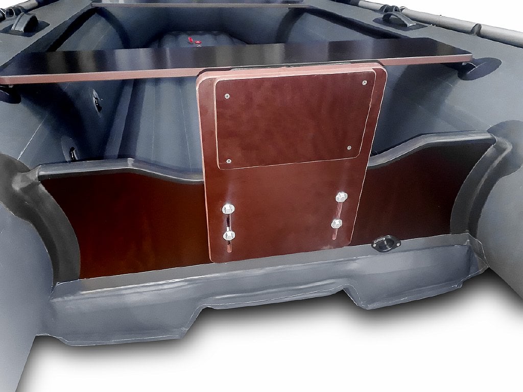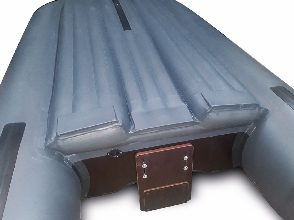 Надувное дно низкого давления обеспечивает жесткость корпуса лодки, повышая устойчивость на воде и улучшая управляемость надувное дно также выполняет роль буферной зоны, смягчая удары и защищая основную конструкцию лодки от повреждений. Торцевая часть надувного дна лодки была модернизирована с использованием стеклопластика.