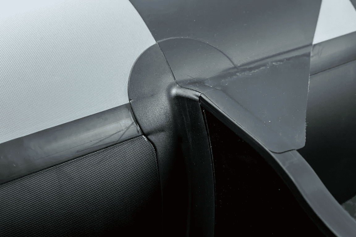 Эта лодка обладает повышенной плотностью баллонов и днища, составляющей 900 г/м², что гарантирует уверенность, устойчивость и стабильность на борту, устраняя ощущение, будто сидишь на скамейке над водой. Швы обрабатываются с обеих сторон с помощью холодной сварки, где специальный клей взаимодействует с материалом ПВХ, обеспечивая герметичное и прочное соединение элементов.