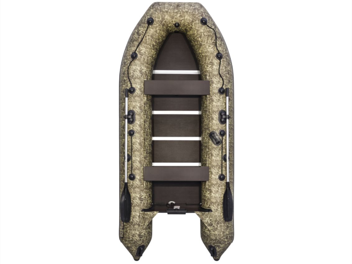 Лодка ПВХ Ривьера Компакт 3600 СК "Камуфляж" камыш-выполнена из износостойкой армированной ткани с камуфляжным рисунком «камыш». Оснащена надувным килевым полом и усиленными швами для надёжной герметичности. Обладает комбинированными сиденьями, удобными ручками для переноски и транцевой доской для установки лёгкого мотора. Лёгкая в сборке, компактно складывается и обеспечивает высокую устойчивость, манёвренность и комфорт при рыбалке или охоте.