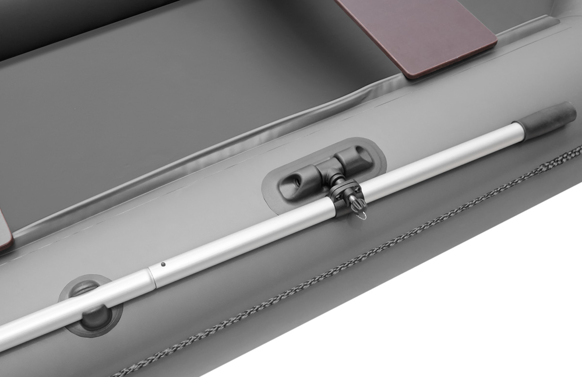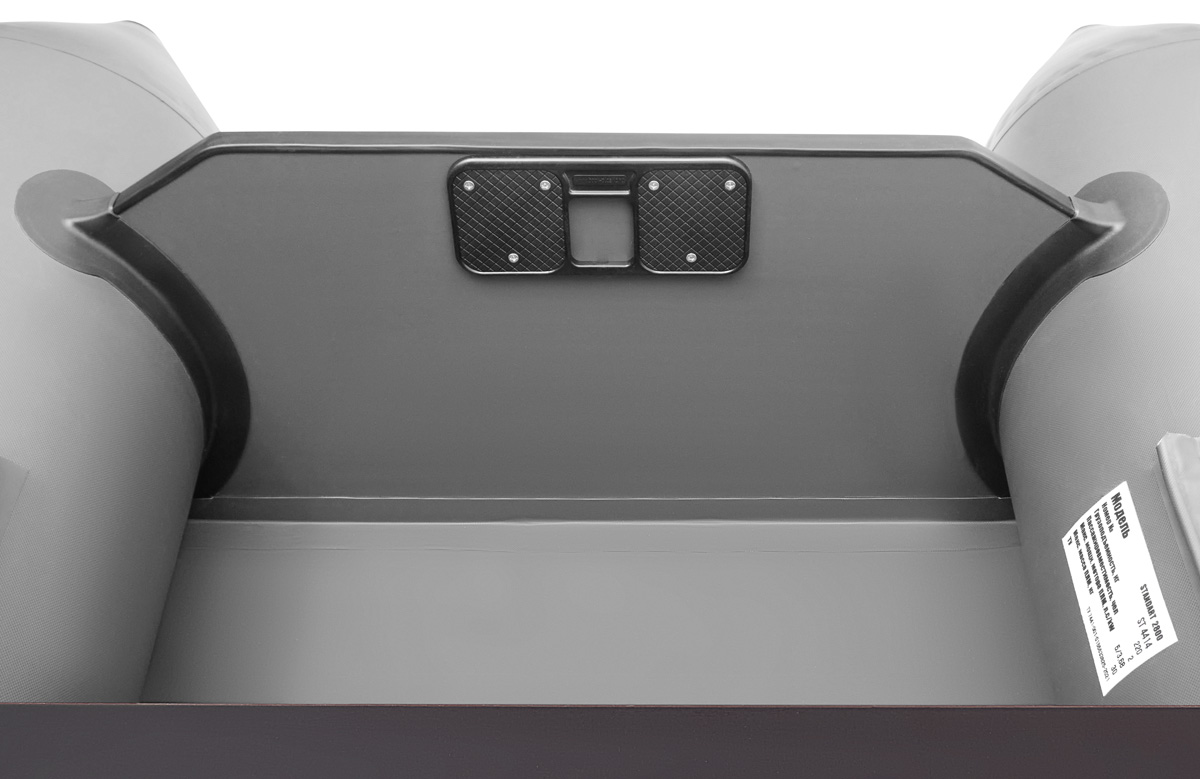 Лодка оснащена встроенным транцем, на который можно прикрепить мотор мощностью до 5 л.с. Моторно-гребная лодка Standart 2600 неприхотлива в обслуживании, обладает высокой ремонтопригодностью ( в случае прокола можно легко вернуть судно в рабочее состояние), сборка и разборка судна занимает около 15 минут.