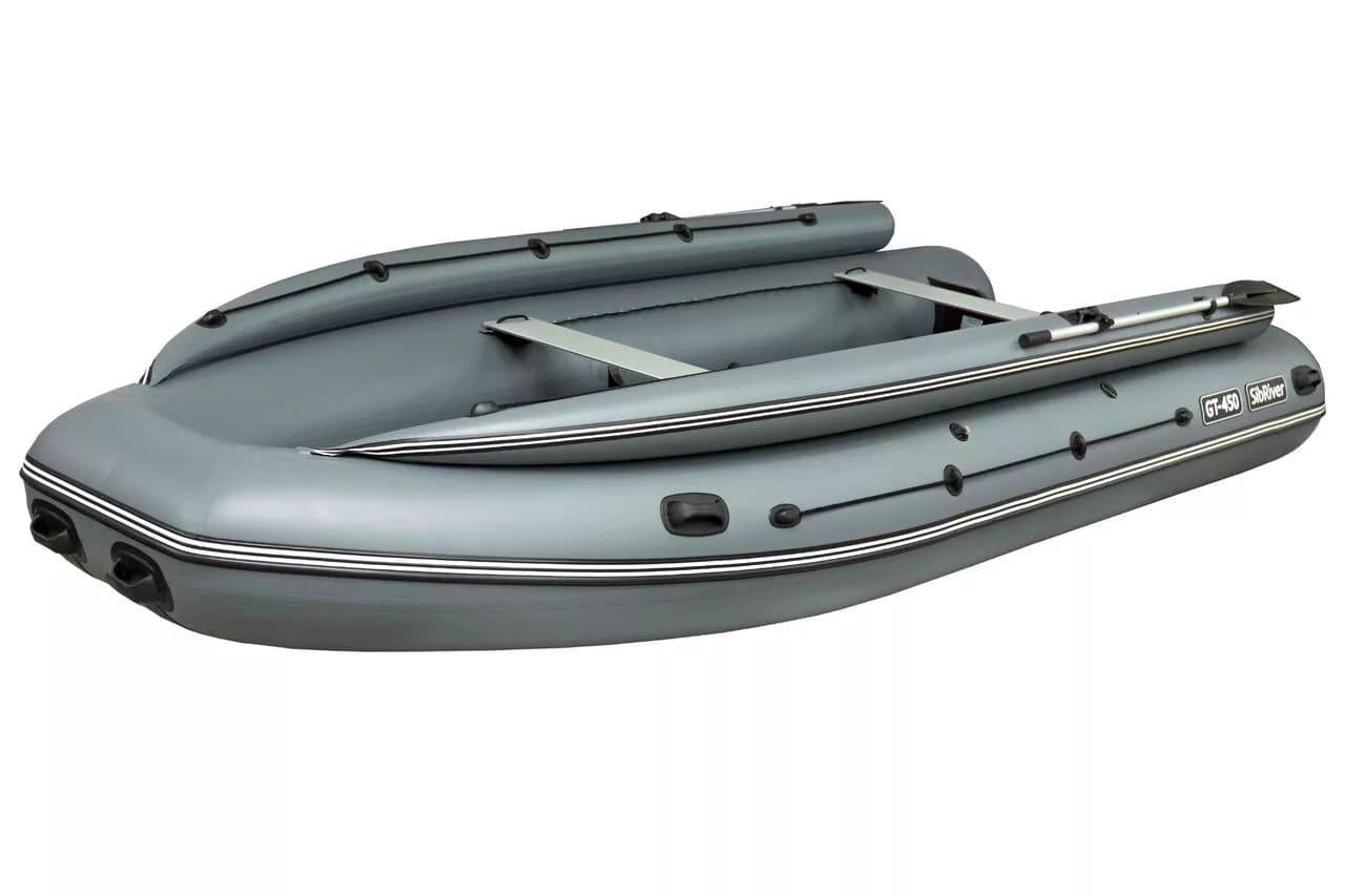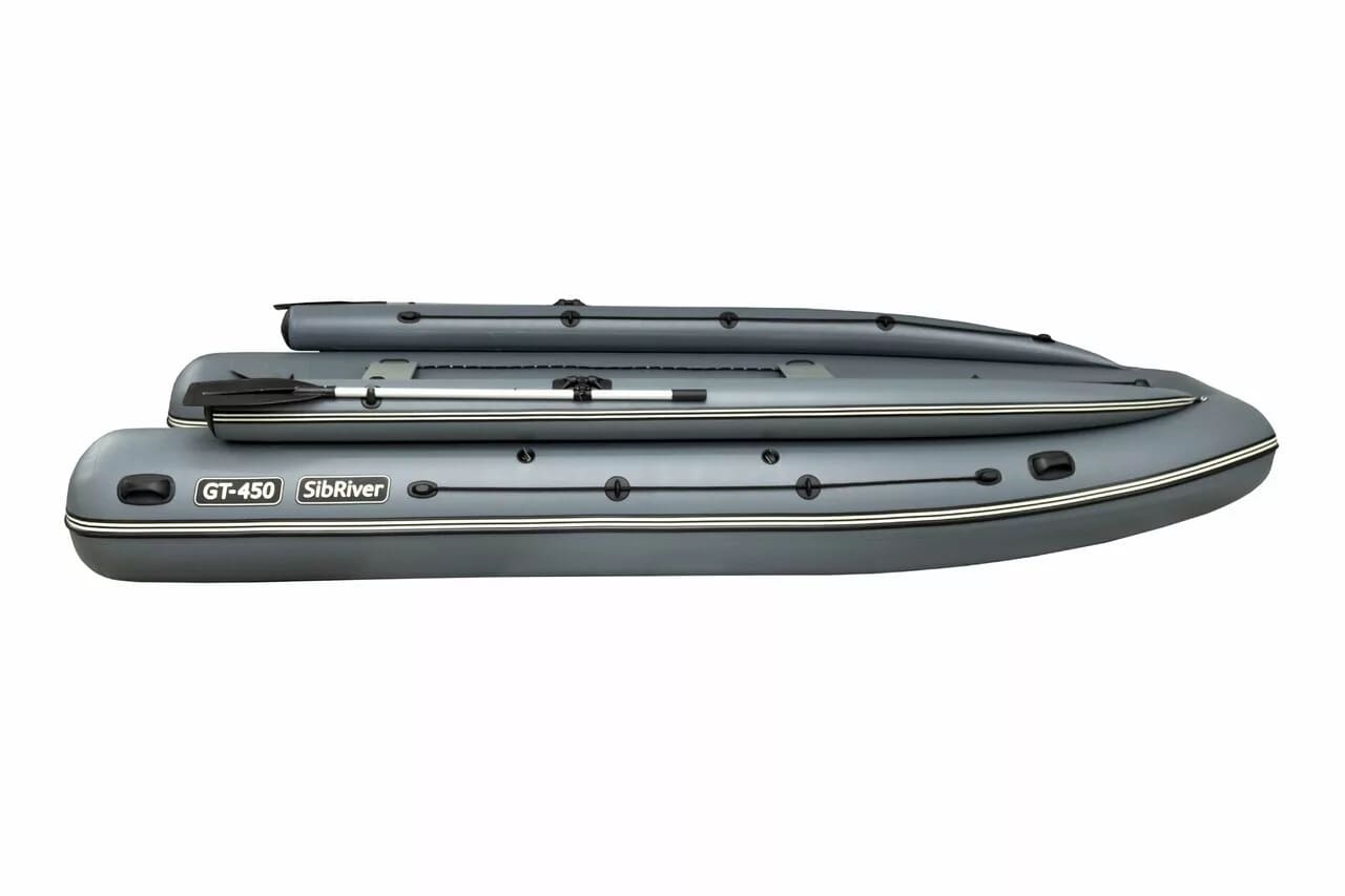 При проектировании днища была поставлена задача добиться максимальной универсальности, эффективности и функциональности в широком диапазоне рабочих нагрузок. Условием достижения поставленной задачи стала конструкция, с заложенными лучшими качествами наиболее известных и популярных вариантов формирования надувных днищ, как в многобаллонном исполнении, так и в НДНД варианте. Именно совмещение и комбинирование элементов многобаллонников и НДНД лодок, в единое днище, позволило добиться прорыва в ходовых и эксплуатационных характеристиках тоннельных моторных лодок с надувным дном. Все лодки SibRiver серии GT обладают рядом преимуществ и особенностей в своем классе: