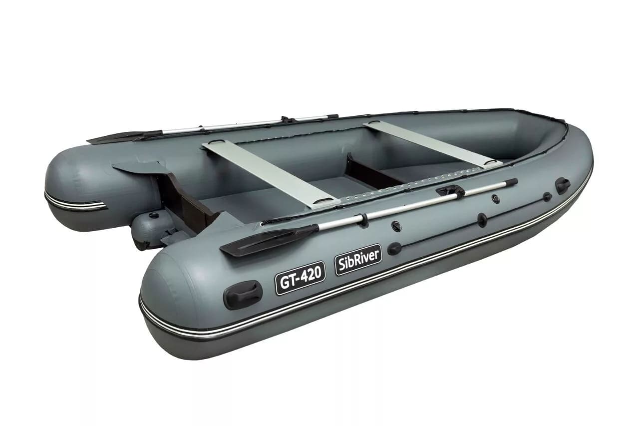 При проектировании днища была поставлена задача добиться максимальной универсальности, эффективности и функциональности в широком диапазоне рабочих нагрузок. Условием достижения поставленной задачи стала конструкция, с заложенными лучшими качествами наиболее известных и популярных вариантов формирования надувных днищ, как в многобаллонном исполнении, так и в НДНД варианте. Именно совмещение и комбинирование элементов многобаллонников и НДНД лодок, в единое днище, позволило добиться прорыва в ходовых и эксплуатационных характеристиках тоннельных моторных лодок с надувным дном. Все лодки SibRiver серии GT обладают рядом преимуществ и особенностей в своем классе: