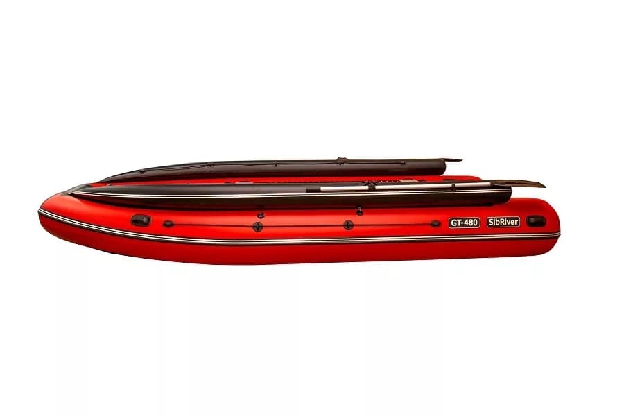 При проектировании днища была поставлена задача добиться максимальной универсальности, эффективности и функциональности в широком диапазоне рабочих нагрузок. Условием достижения поставленной задачи стала конструкция, с заложенными лучшими качествами наиболее известных и популярных вариантов формирования надувных днищ, как в многобаллонном исполнении, так и в НДНД варианте. Именно совмещение и комбинирование элементов многобаллонников и НДНД лодок, в единое днище, позволило добиться прорыва в ходовых и эксплуатационных характеристиках тоннельных моторных лодок с надувным дном. Все лодки SibRiver серии GT обладают рядом преимуществ и особенностей в своем классе: