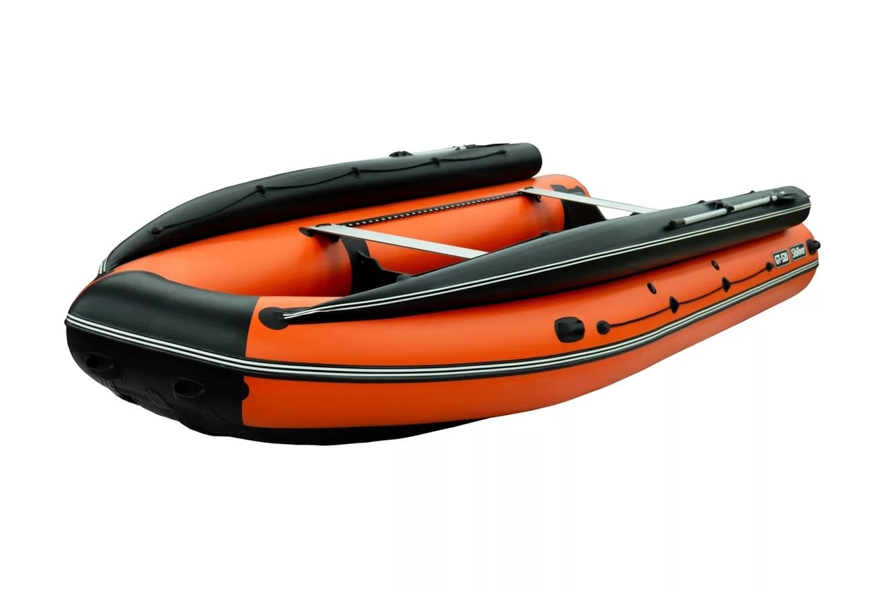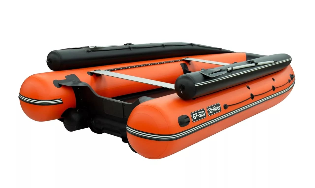 При проектировании днища была поставлена задача добиться максимальной универсальности, эффективности и функциональности в широком диапазоне рабочих нагрузок. Условием достижения поставленной задачи стала конструкция, с заложенными лучшими качествами наиболее известных и популярных вариантов формирования надувных днищ, как в многобаллонном исполнении, так и в НДНД варианте. Именно совмещение и комбинирование элементов многобаллонников и НДНД лодок, в единое днище, позволило добиться прорыва в ходовых и эксплуатационных характеристиках тоннельных моторных лодок с надувным дном. Все лодки SibRiver серии GT обладают рядом преимуществ и особенностей в своем классе: