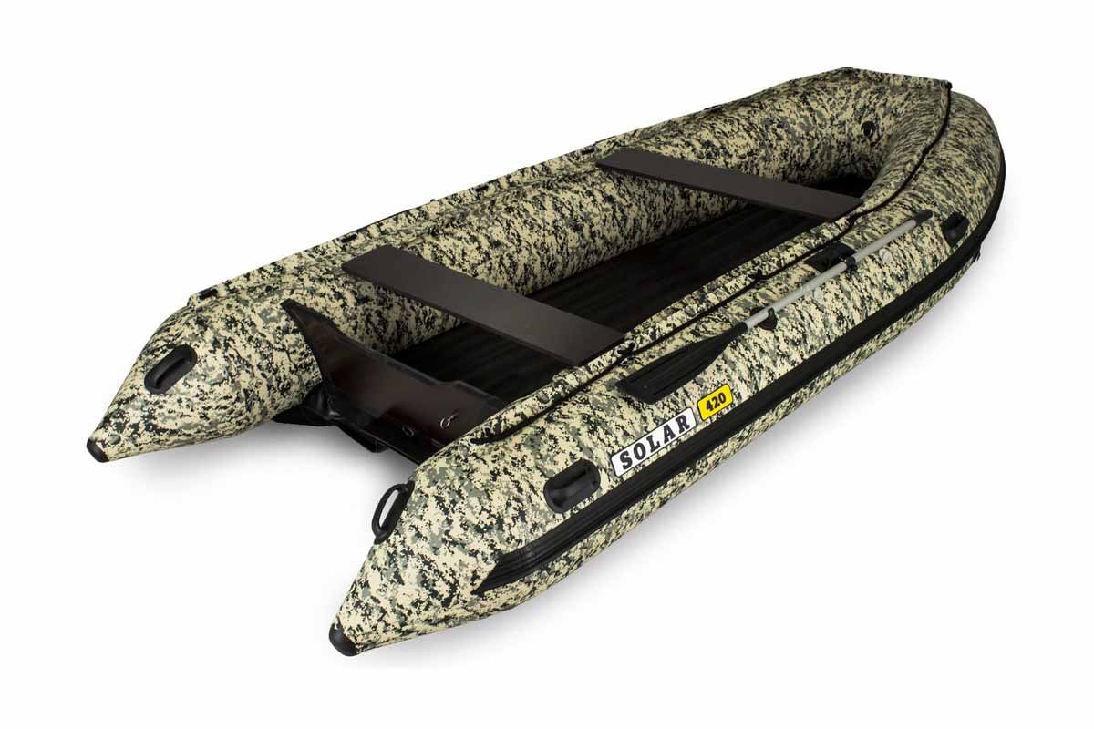 Надувная лодка Солар весит всего 80 кг, а размер ее составляет 420 см в длину, 200 см в ширину и 50 см в высоту. Эти размерные параметры обеспечивают райдеру возможность легко маневрировать и передвигаться по различным водоемам, включая небольшие участки.