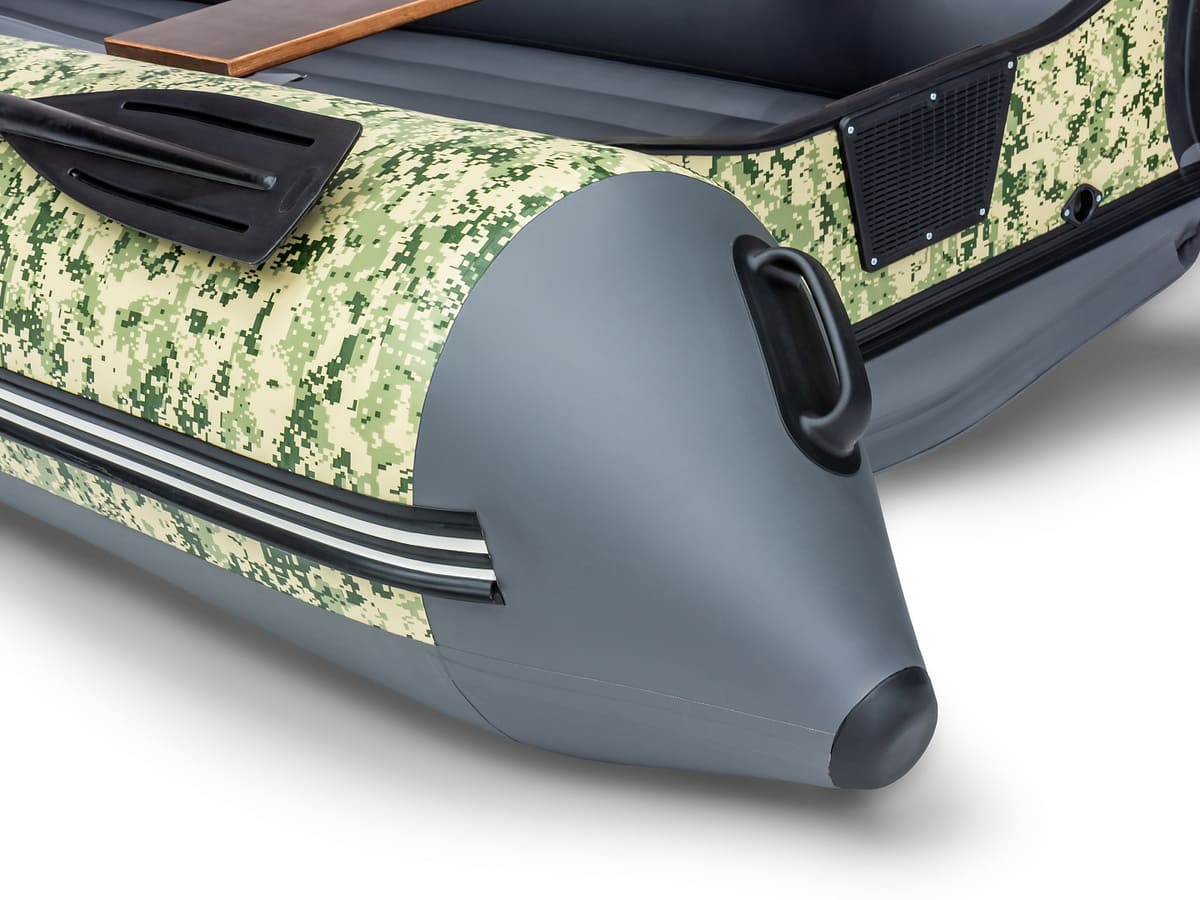 Надувная лодка «Stormline Expedition» изготовлена из высокопрочной синтетической ткани с двусторонним полимерным покрытием ПВХ с добавлением термопластичного полиуретана. Применяемая ткань экологически безопасна, имеет высокие прочностные и климатические характеристики. Конструкция лодки исполнена в виде 3-х секционного надувного баллона. Для придания килевой формы используется надувное дно низкого давления с перегородками создающий жесткость палубы по всему периметру. Данные лодки отличаются максимальной вместительностью, увеличенной шириной кокпита, премиальное ПВХ 1200-1400гр м2, что в совокупе с размером дает преимущество при выборе клиента для максимально суровых условий эксплуатации