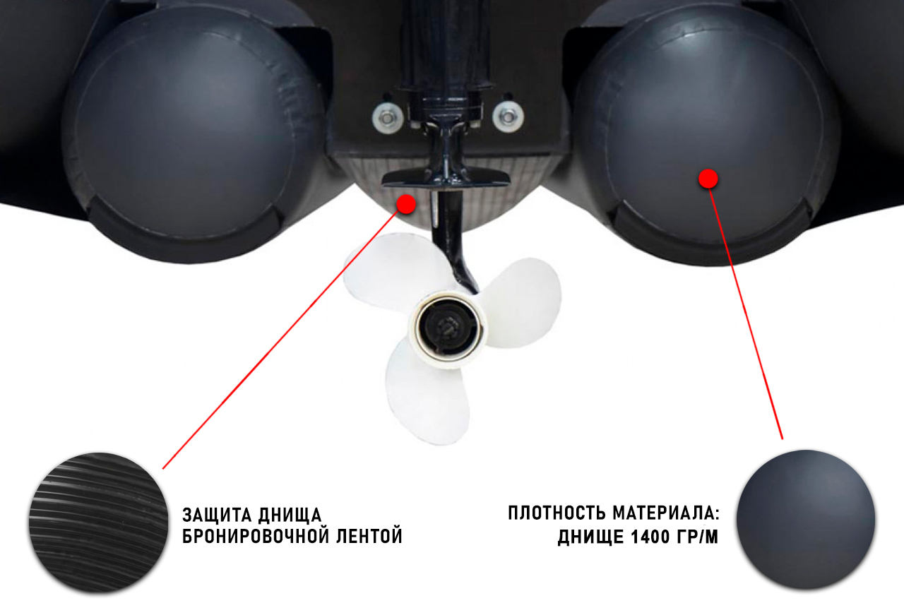 Борта лодки и надувное днище оборудованы итальянскими клапанами «BRAVO (для сброса избыточного давления в случае перекачки или перегрева)» с увеличенным сроком эксплуатации. Дополнительные ручки по бортам лодки помогут с легкостью переносить лодку.