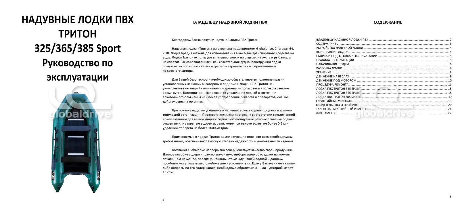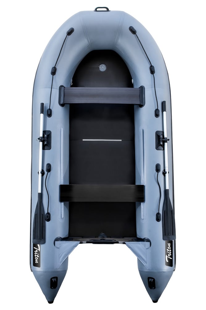 Безопасность пассажиров Тритон 385 Sport дополнительно обеспечивается натянутым вдоль борта леерным тросом. На концах баллонов и в передней части корпуса имеются ручки для переноски. Для фиксации весел в стояночном положении предусмотрены держатели.