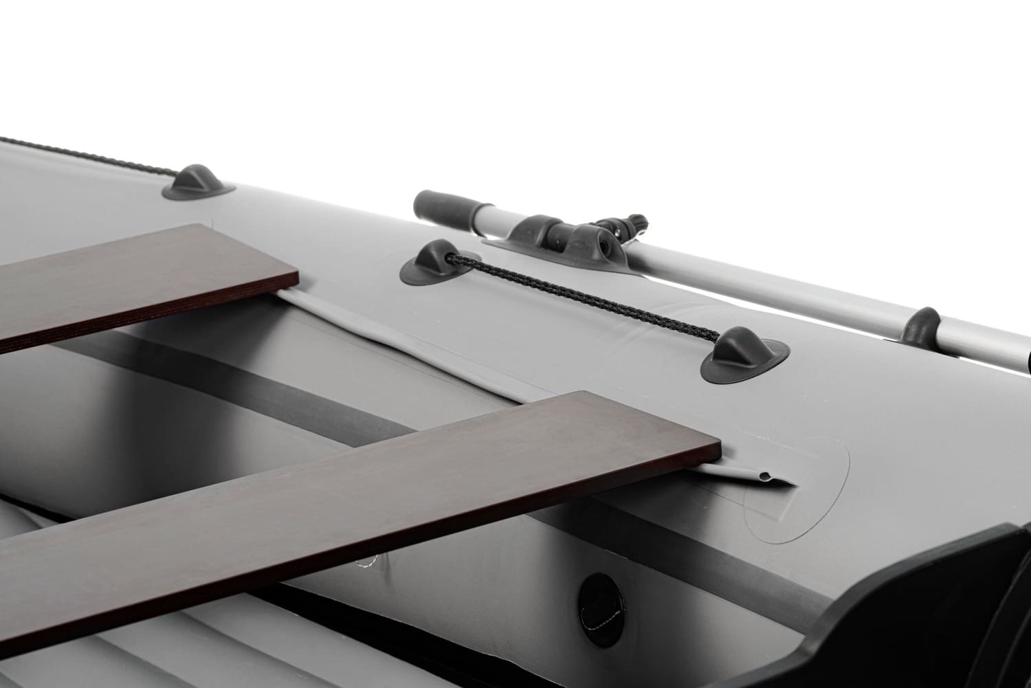 Конструкция лодки исполнена в виде 3-х секционного надувного баллона. Для придания килевой формы днища конструкцией предусмотрен отдельный надувной баллон, улучшающий скоростные и мореходные характеристики лодки.