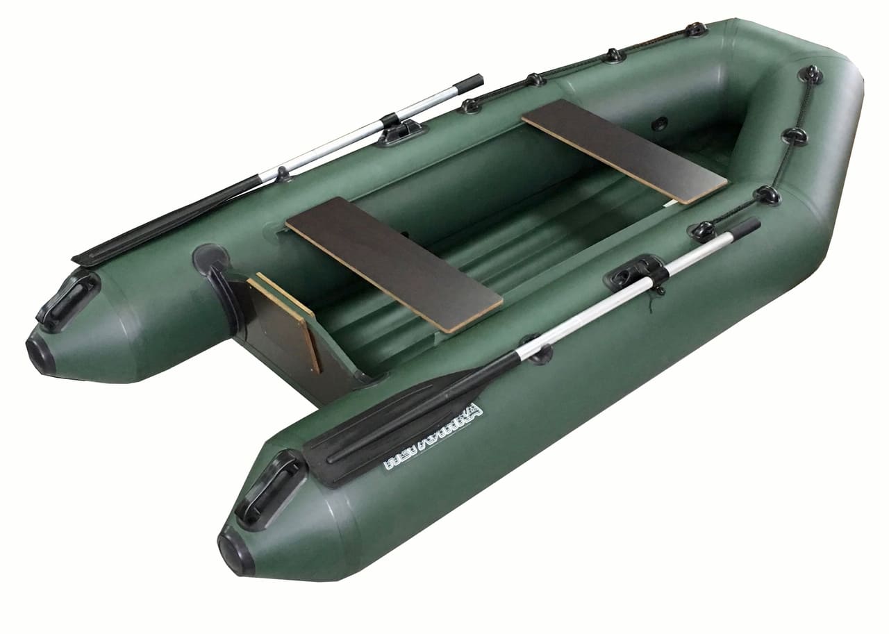 Надувная моторно-гребная лодка НЕГЛИНКА 270М (надувное дно) с Л-образным корпусом, разделенным внутренними перегородками на три автономных отсека и вклеенным жестким транцем. К корпусу приклеено надувное днище. На борта лодки приклеены поворотные уключины, фиксаторы весел, причальная шайба, шайбы леера и пояса для крепления подвижных сидений. Лодка изготовлена из ткани ПВХ весом 750 гр/м2. Рабочее давление 0.25 кгс/см2. «Нога» подвесного мотора 380мм или 440мм.