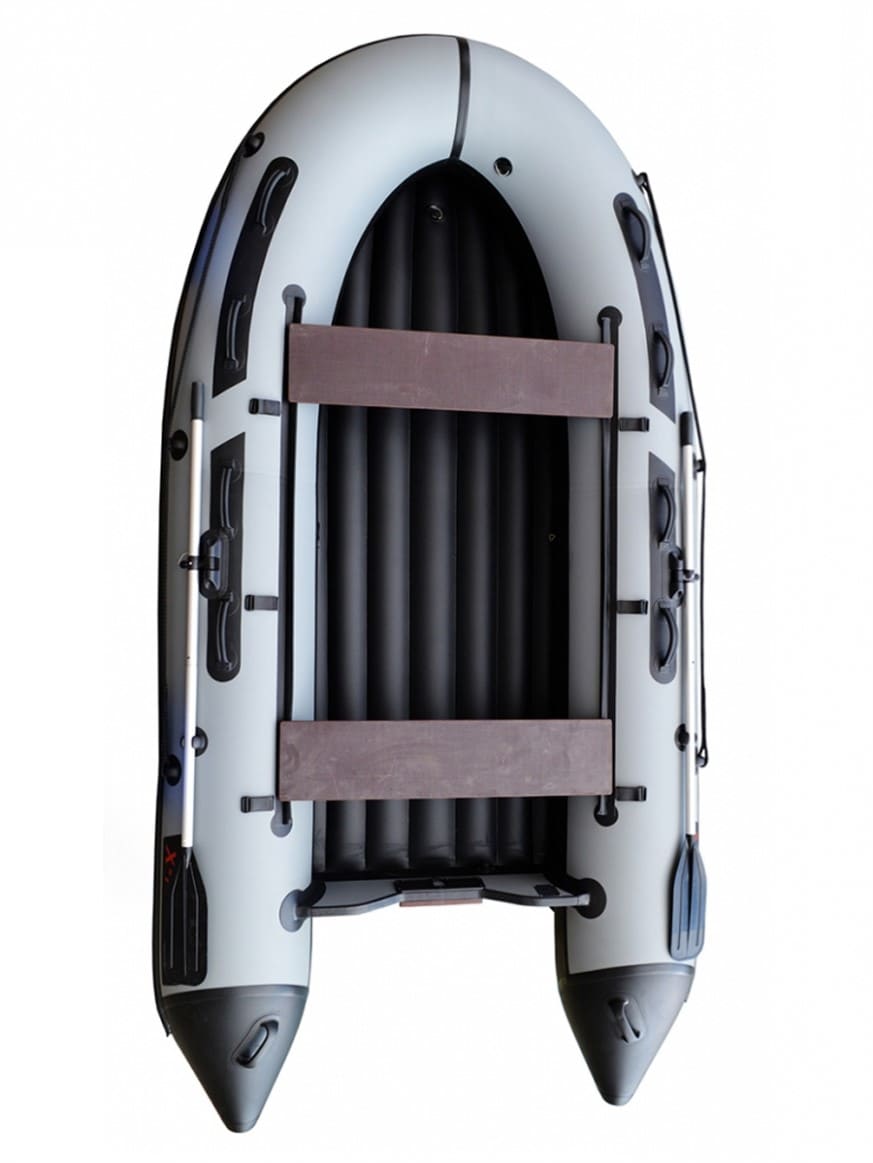 Лодка комплектуется надувным дном низкого давления, которое обеспечивает жесткость корпуса лодки, повышая устойчивость на воде и улучшая управляемость. Кроме того, продольные перегородки выполняют роль дополнительных ребер жесткости: пол практически не уступает по прочности твердым вариантам.