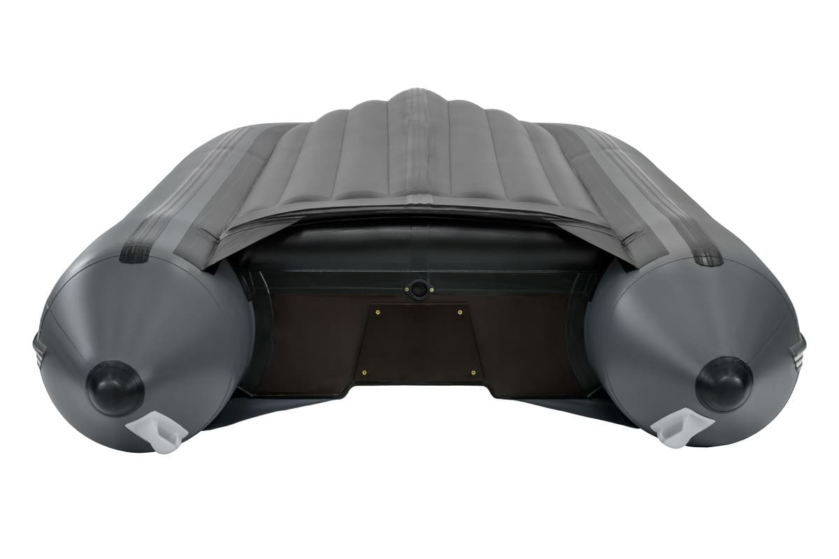 Лодка комплектуется надувным дном низкого давления, которое обеспечивает жесткость корпуса лодки, повышая устойчивость на воде и улучшая управляемость. Кроме того, продольные перегородки выполняют роль дополнительных ребер жесткости: пол практически не уступает по прочности твердым вариантам.