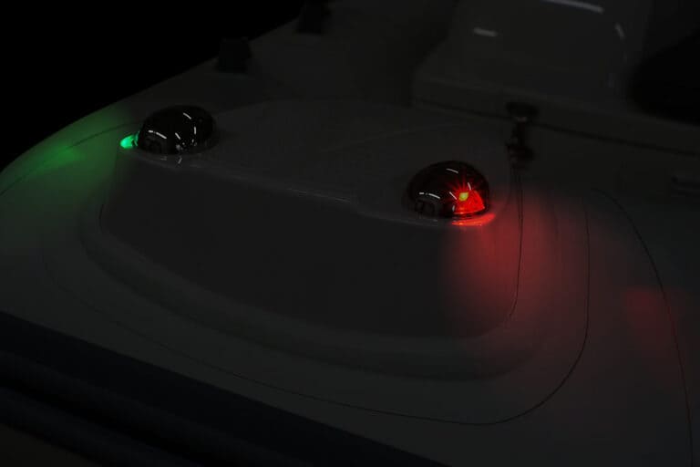 - Стеклопластиковая носовая платформа с встроенными навигационными огнями