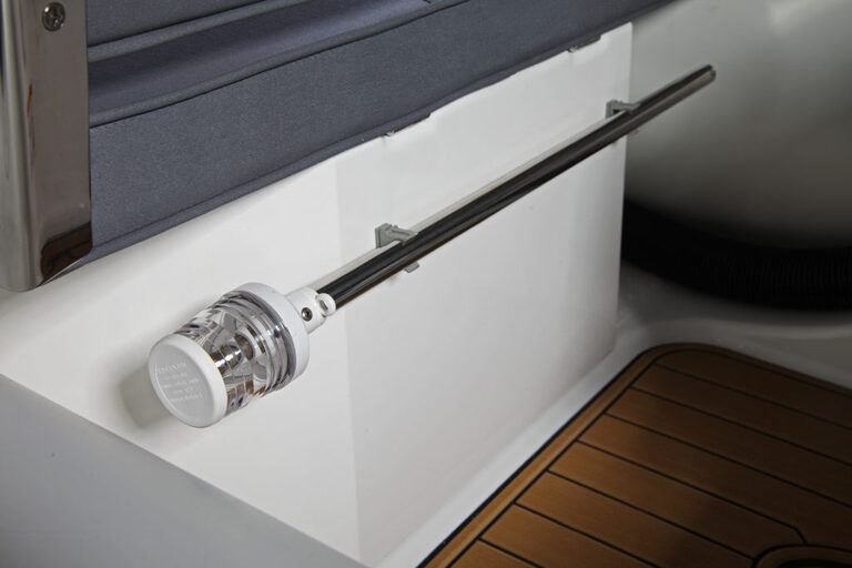 - Стеклопластиковая носовая платформа с встроенными навигационными огнями
