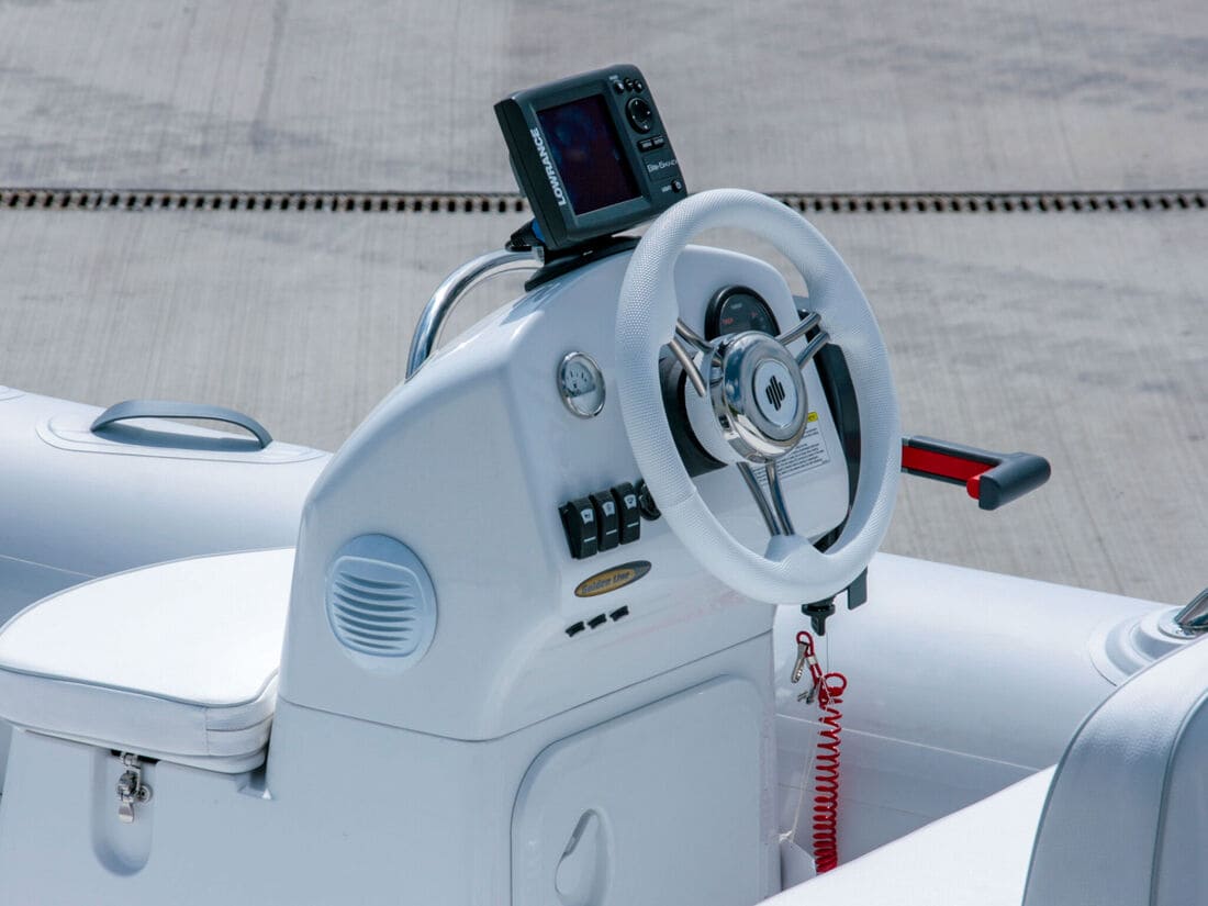 - Рулевая стойка CL-06 с нержавеющим поручнем, передним пассажирским сиденьем и большим рундуком
