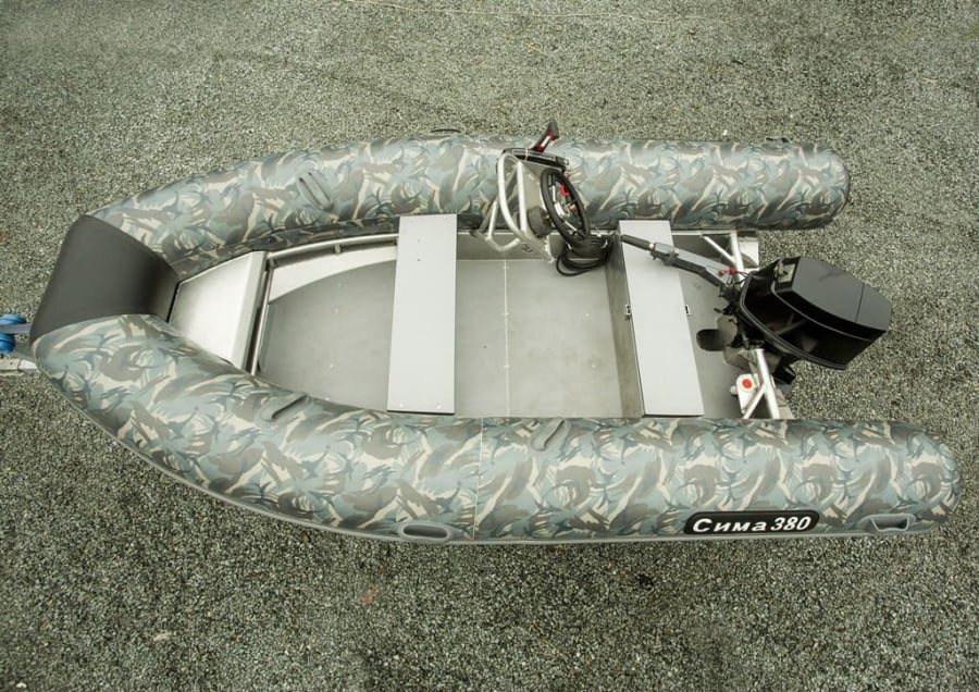 Катер РИБ «Сима 380» представляет из себя жесткий корпус, изготовленный из листов алюминия АМГ5м при помощи электро-дуговой сварки в среде аргона с установленным на него надувным баллоном из многослойной ткани ПВХ. Форма корпуса - комбинированные обводы с гидролыжей и элементами "морского ножа". Крепление баллона к корпусу - ликтрос/ликпаз. Владелец может самостоятельно снять баллон с корпуса. Это может пригодиться при транспортировке, зимнем хранении или замене на запасной. На баллон и корпус можно установить целый ряд улучшений, которые являются как готовыми решениями, так и могут быть изготовлены по вашем замыслам.