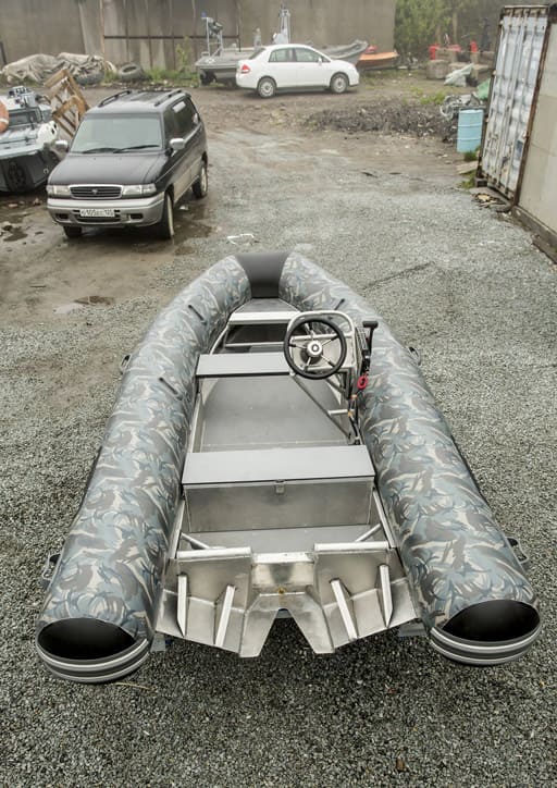 Алюминиевый корпус выдерживает любые серьезные удары. Там, где стеклопластик трещит и пробивается - алюминий только царапается. Отлично бегает под 15-ти сильным двигателем. Прочности хватает для эксплуатации под мотором до 50 л. с. !!!