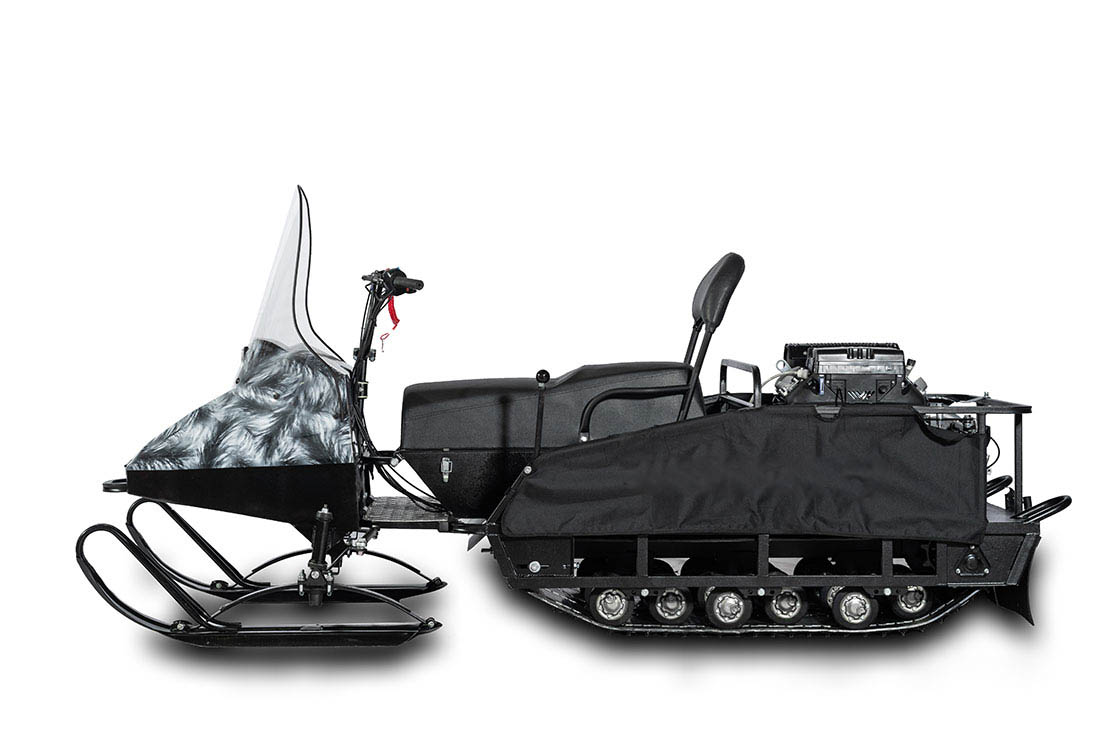 Формула «две лыжи + две гусеницы» обеспечивает новому Егерь Центро Экспедитор существенное пятно контакта на снег и высокую проходимость. За счет расположения двигателя в средней части миниснегохода нам удалось добиться оптимальной развесовки и сделать новую модель еще более управляемой. А увеличенное багажное отделение в задней части рамы решает вопросы с транспортировкой грузов.