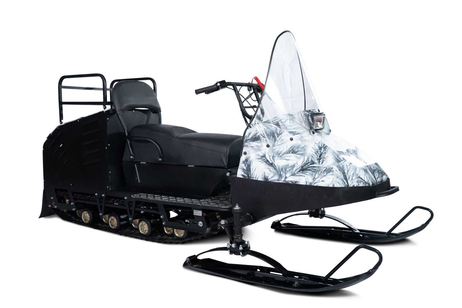 В базовую комплектацию входят реверс и тормоз. В качестве доп.опций можно установить съемный багажник, электрозапуск, подогрев ручек руля и курка газа. Модель доступна в двух вариантах покраски капота: Белый и Белый Камуфляж