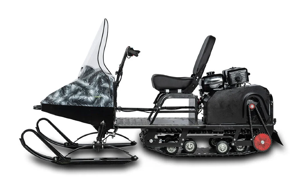 Модель на базе укороченной гусеницы. На миниснегоход установлено одноместное сиденье катерного типа. В качестве доп.опций можно установить тормоз, эл.запуск, подогрев ручек руля и курка газа.