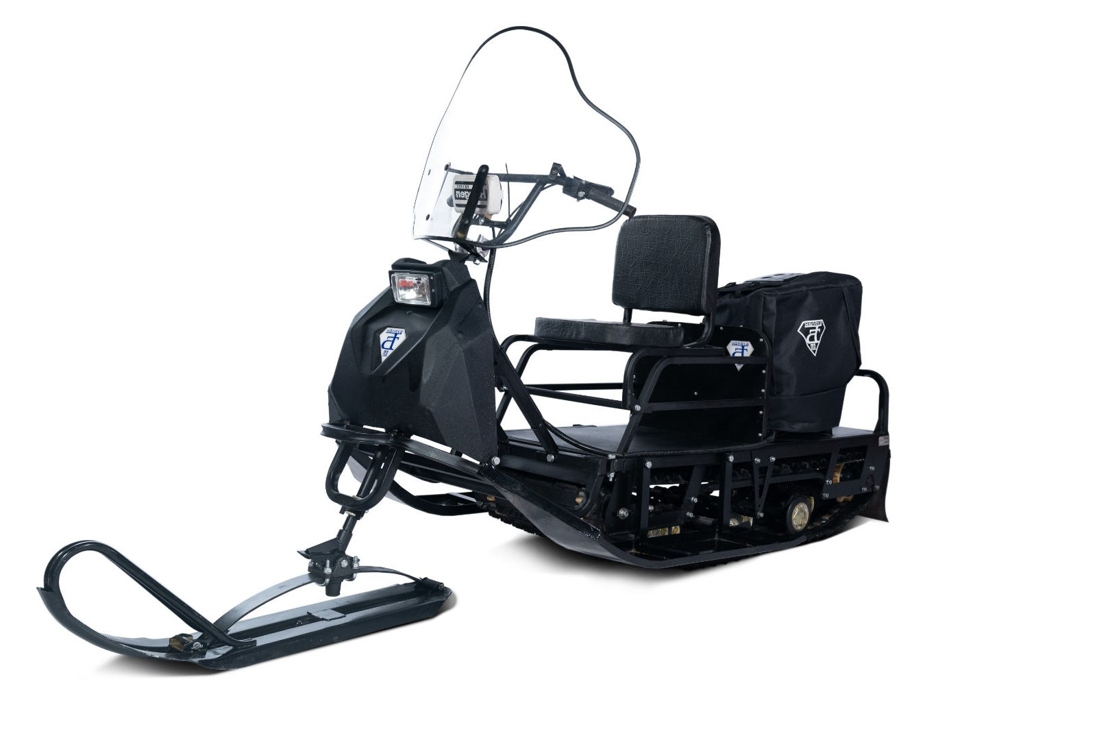 Разборная конструкция, однолыжный модуль с дополнительными опорами, одноместное сиденье, катковая подвеска, заднее расположение двигателя. Доп. опция – подогрев ручек руля и курка газа, электрозапуск, реверс, тормоз.